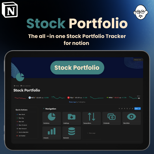 Stock Portfolio Tracker Template for Notion | Track Stocks, Dividends & Transactions