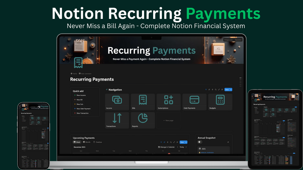 Recurring Payments - Notion Template for Bills, Subscriptions & Budget Tracking
